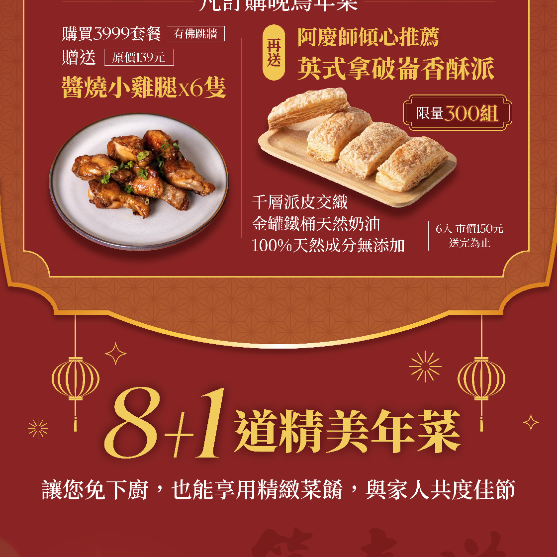 成分:小雞腿(產地:台灣)、阿慶師黑豆醬油(黑豆、蔗糖、食鹽、轉化液糖(蔗糖、水))、味醂(水、糯米、米麴、葡萄糖、酵母精粉、鹽)、糖、蒜、啤酒、米酒(米、水)、鹽、五香粉、烏醋、白胡椒粉