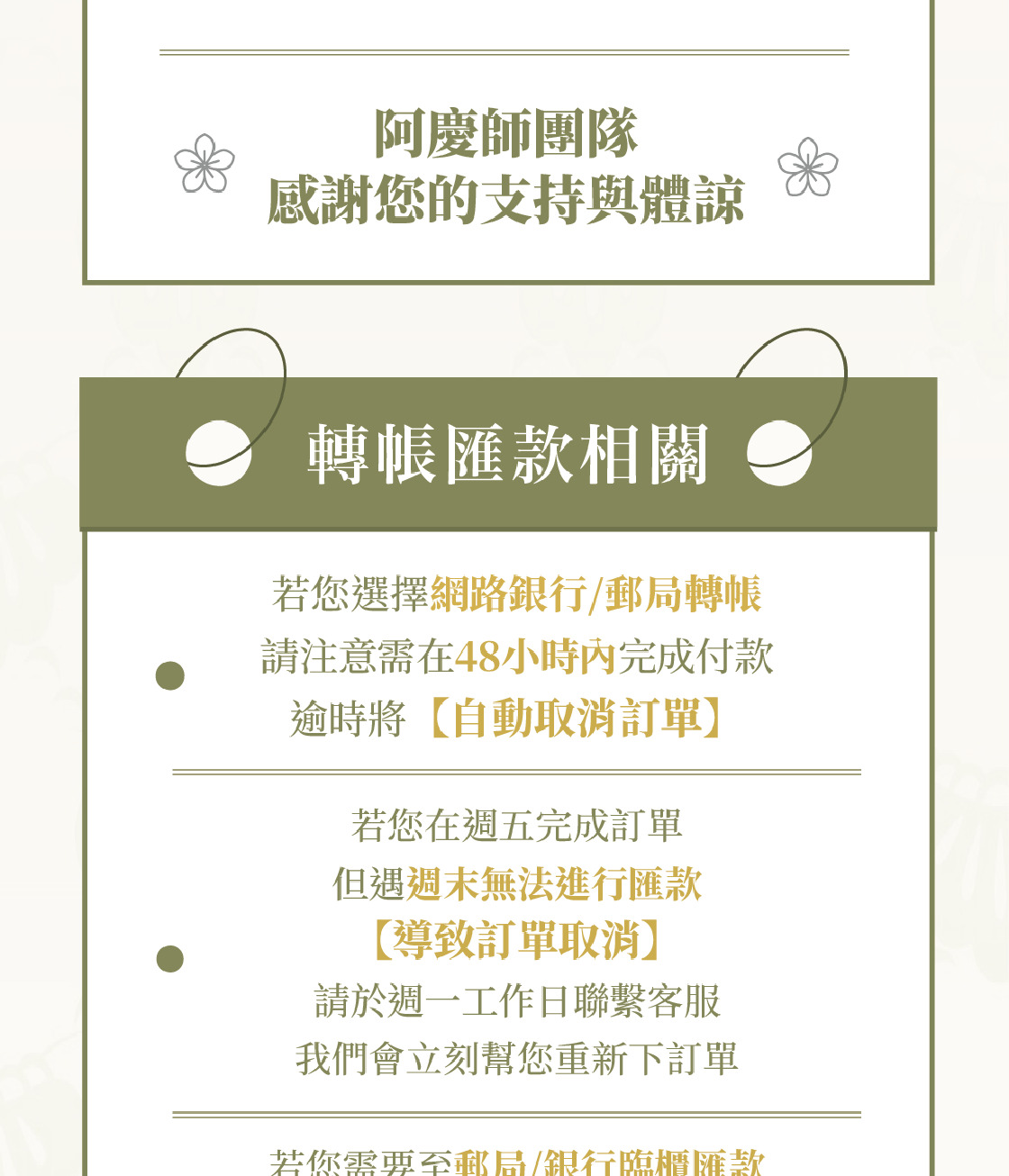 貨到付款 / ATM 轉帳 / 信用卡付款